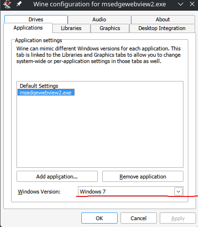 After its added under the applications tab, choose it and change the Windows Version to Windows 7 like show in the image below